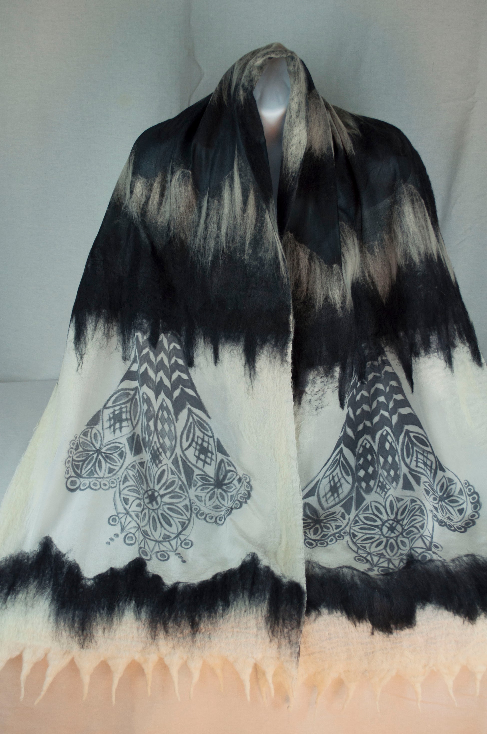 Felt Silk Shawl with Prints and Cutouts